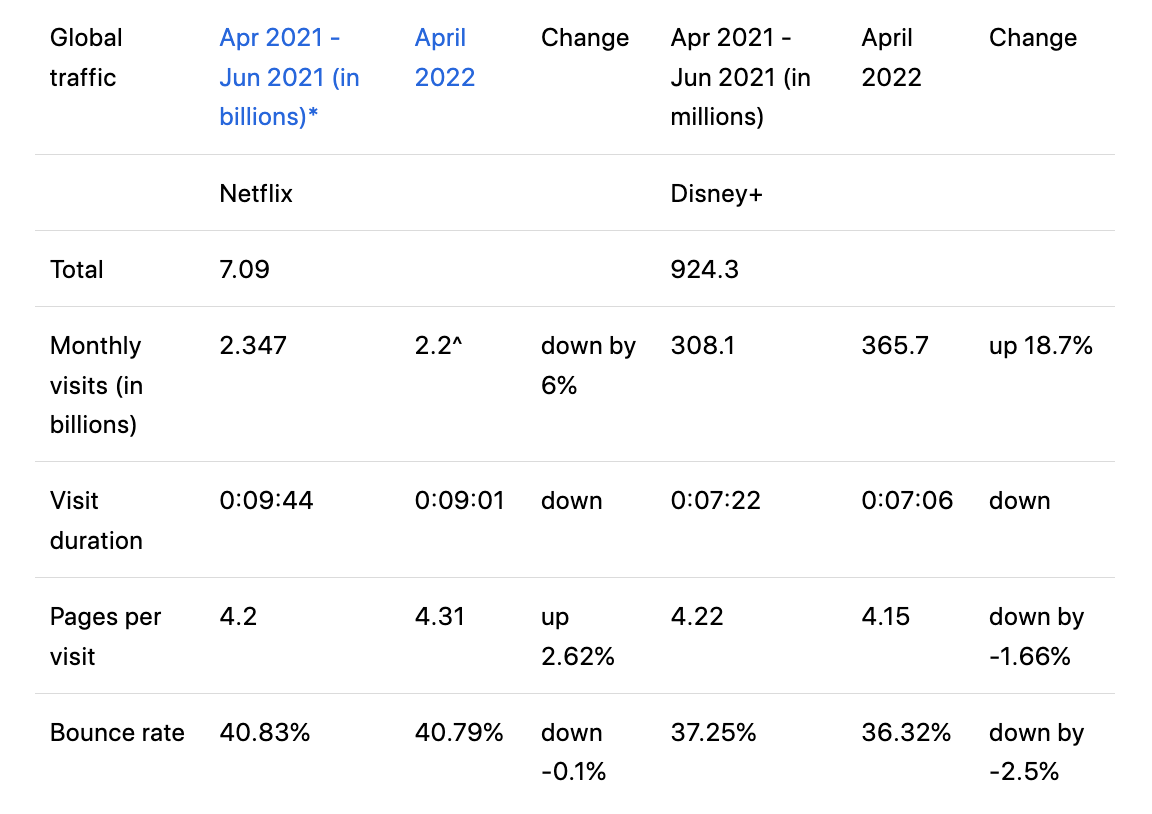 3) Web traffic comparisons between one of the strongest quarters in Q2 2021 and April 2022 traffic-While the global traffic is staying flat for Netflix in April 2022 compared to April 2021, there hasn't been a significant decline. As Netflix continues to expand internationally especially in the APAC, the growth rate will re-accelerate.